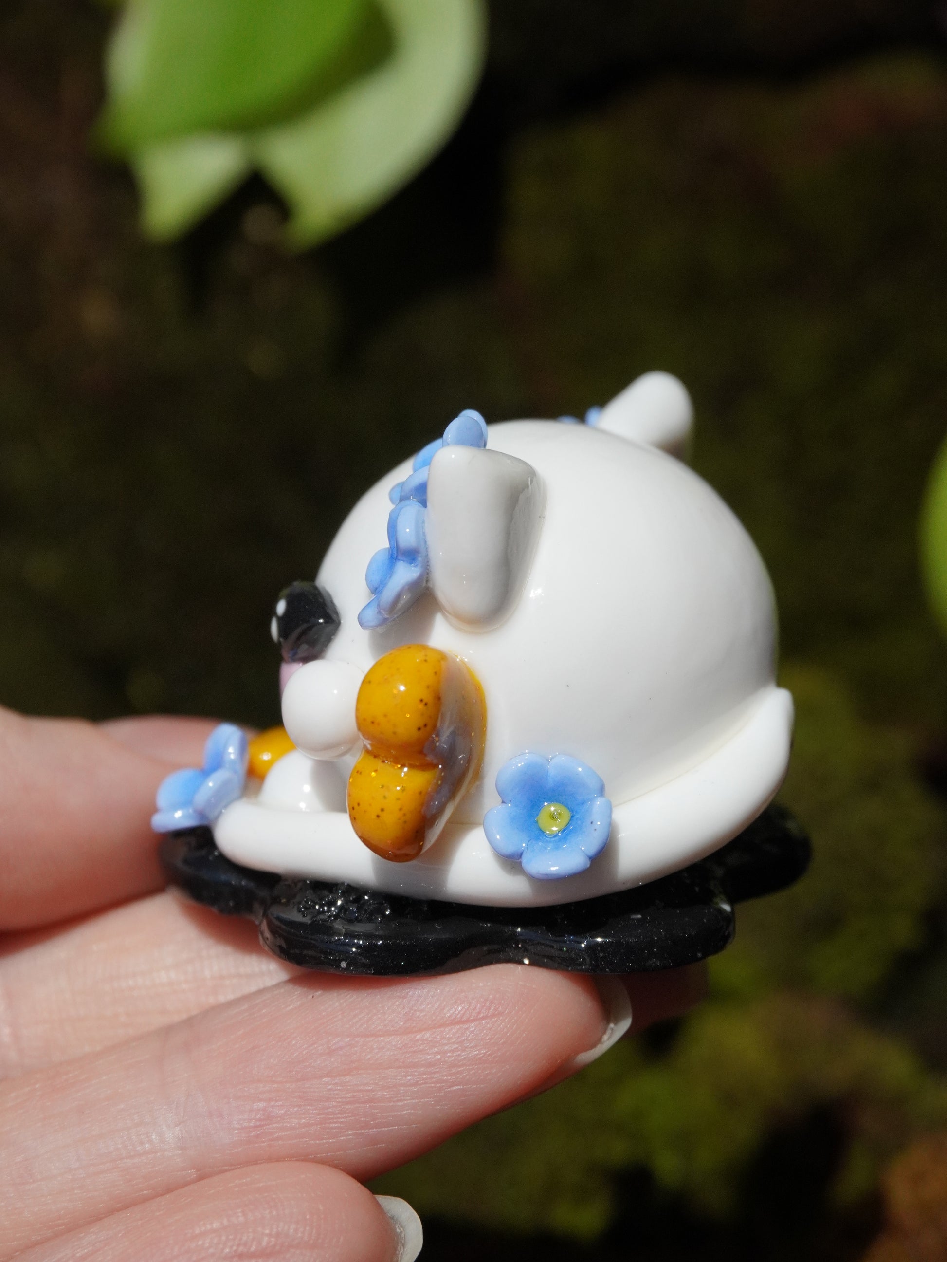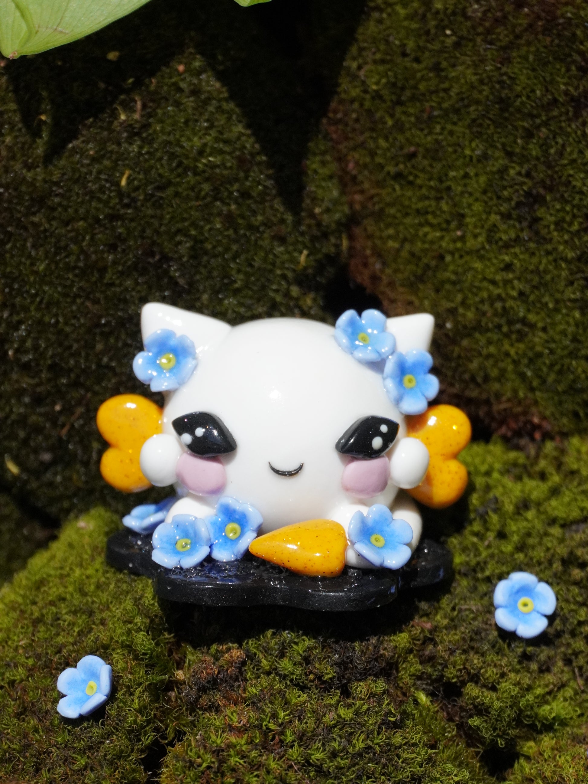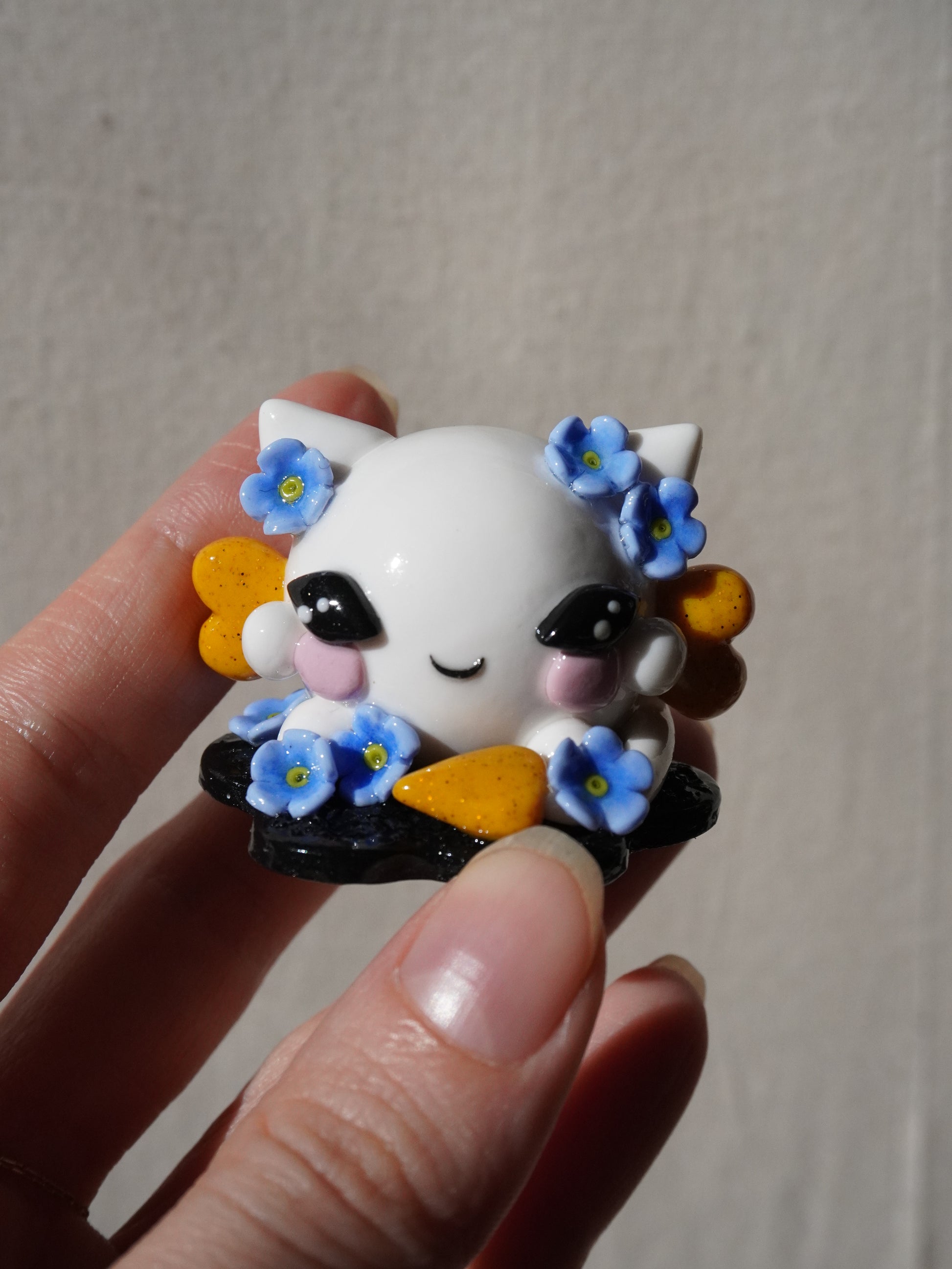 This little desk friend is handmade from polymer clay, then sealed with three layers of thick glossy varnish for extra durability and shine.